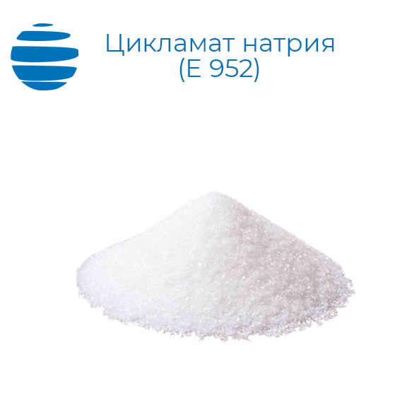 Цикламат натрия (Е 952, цикламатовая кислота) имеет химическую формулу C6H12S3NNaO. Синтетически выведенный подсластитель, использующийся в пищевой и фармакологической отраслях для придания продуктам сладкого вкуса. Сладость данной пищевой добавки превышает сладость сахара десятикратно и может значительно усилить этот эффект при взаимодействии с другими подсластителями вкуса, такими как: ацесульфам, аспартам или сахарин натрия. Пищевая добавка, допустимая к употреблению людьми, больными диабетом, поскольку не образует при расщеплении глюкозы. Очень широка сфера его применения: от изготовления конфет - до газированных напитков.